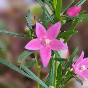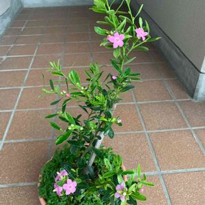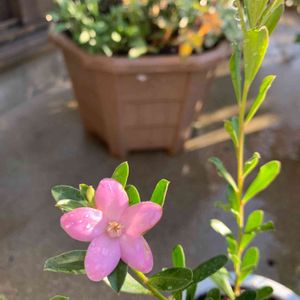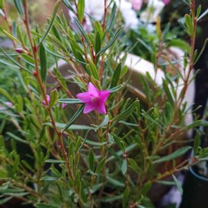 11月中旬 雨の朝、寒いのでマフラーをぐるぐるまきました🧣 数日前から「サザンクロス」の星形ピンクの小さなお花が咲きだしました☆ 9月ごろ、珍しく家人が買ってきた鉢植なのですが、わりとすぐ花がおわり、ブッシュだけ残っていました。 もう来年かなーと思っていたらポツポツとつぼみがつき9月よりはすくないですが良い感じです💞 雨雲で暗い朝等、ピンクの☆型のお花をみると、なんだか何か小声で話しかけたくなるような気がします☆ サザンクロスは流通名で クロウェア・エクサラータ。 サザンクロスという英名をもつセリ科の別の花がある、ということを知りました💡 「みんなの趣味の園芸」より一部引用↓ 『クロウエアはオーストラリア東部原産。 4種が知られていてC・エクサラータ(C.exalata)、半耐寒性の常緑低木として栽培されています。 いずれも酸性土を好みます。 日本に導入された際に「サザンクロス」という流通名で紹介されたため、現在でもこの名前で出回ることもありますが、サザンクロス(Southern Cross)はセリ科の植物の英名です。』 ということで、クロウェアはみかん科🍊なのだそうです。 葉っぱもきれいだし寄せ植えに入れても良さそうですね😉