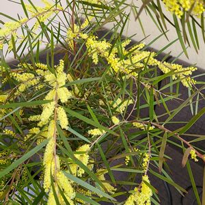 こんにちは👋😃 アカシア ブリスベーンワトル。 2年過ぎました。 枝が、垂れてますが、3mくらいになってます。 黄色のもふもふ姿は、素敵ですね。 樹全体が黄色になれば どんなに素敵な花姿に、なるのか楽しみです。