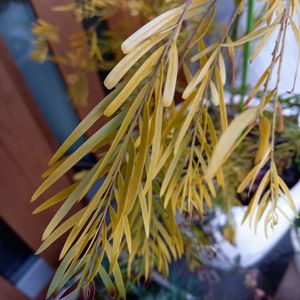 アカシア 緑葉から黄葉に色を変えても優しいアカシアブリスベン…😂 今年は初めてレモンイエローの花が咲きそうです