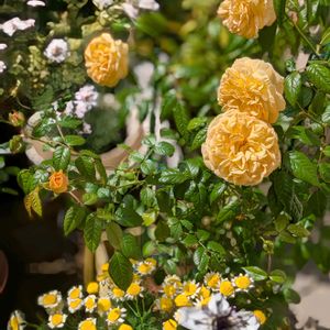 今日のお花🔸バラ(黄)🔸 ① 生育旺盛なサンガッティス✨🧡✨ 2番花が次から次へと咲いています🎶 ② アンバークィーンは今年新苗を迎えて1つだけ咲かせました💓 ③ マルコポーロはサンガッティスと隣り合わせに植えたら、サンガッティスに押され状態になっています🥲 来春植え替えてみようかな〜🤔 ④ グリーンが入ったクリーム色のカップ咲きクリーミィエデン💚🤍🧡 とても愛らしいです💓 ⑤ 刈り込んでも暴れるモッコウバラ💦 3年前に株元からバッサリ切ってしまったのに復活しています🤣 花の様におしとやかにしてくれると良いのですが…😂