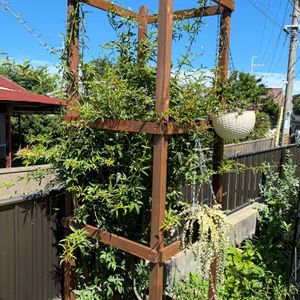 木製トレリスを作ってもらってこのテッペンから枝垂れさせたいモッコウバラ!