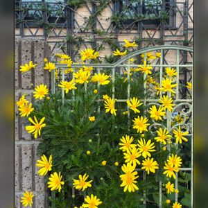 モッコウバラの花がらを全部切り取りました💕 フェンスから顔を出してるユリオプスデージー🌼が次々と咲いてましので後ろが無くなったのを道行く人が「あれっ」となりました😆