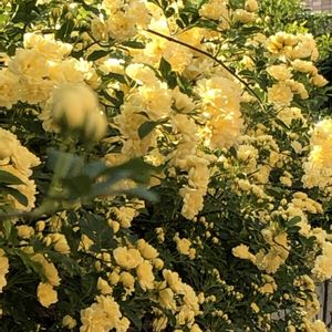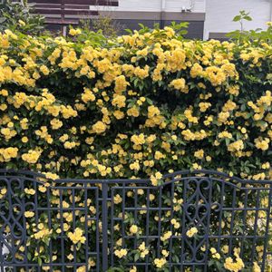 我が家の黄モッコウバラが満開!✨ かなりのびのびやらせてしまっているので、今年は花が終わったら大規模に選定したいと思います!新しい枝も綺麗に誘引しようかと!