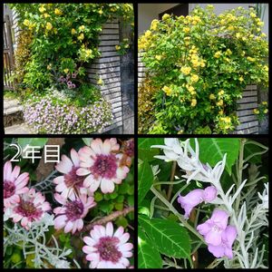 春爛漫💛🤍💛💚 モッコウバラ黄色💛が満開です モッコウバラ白もこれから、🤍と💚アーチを作ってくれます オルレア🤍も咲き出しました 家の西側を埋め尽くします 心躍る季節です💓💓💓