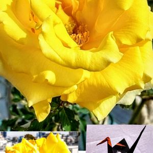 春らしい黄色💛のお花が咲き出して⤴ ビタミンカラーが綺麗です😊♬♡*゚ ①薔薇ゴールドバニー💛この春一番に 咲いてくれました\( ^^ )/🌹 ↘️🍫パッケージの折り鶴と一緒にෆ̈◡̈* ザ・トリフターズに参加しま~す🤭♪ ②③モッコウバラも良い香りと共に満開 になりました💛🎵 ④⑤黄色のフリージアが次々と咲いて こちらも良い香りです~🤗🎶 ✨ʚïɞ.•*¨*•.💛¸💐¸♬✨
