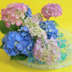 野ニンちゃんクイズです アジサイ色とりどりで作品を作りましたが何本のアジサイをつかっているでしょう スバリ本数をお答え下さい 答えは9本でした 爽やかに見えた人❤マーク❤❤❤❤❤5回押して下さい 本を出版しました絶賛発売中 野ニンのワクワク花時間 本希望の方 ninnin0421@leto.eonet.ne.jp迄