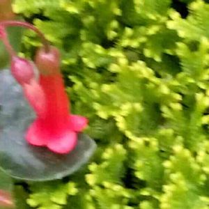 カランコエの紅いランプと何でしょうね?ふかふかの緑(❁´ω`❁)