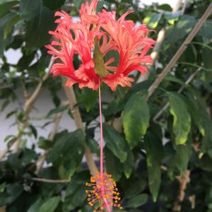 フウリンブッポウソウゲ (風鈴仏桑花) ハイビスカス🌺の仲間だそうです☺️ 花柄は下に長く伸びてその先のシベがなんともチャーミングで見とれてしまいました☺️💕