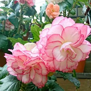 球根ベゴニア💠 ピンクの縁取りがかわいい😊 福岡市植物園温室にて🌿💠