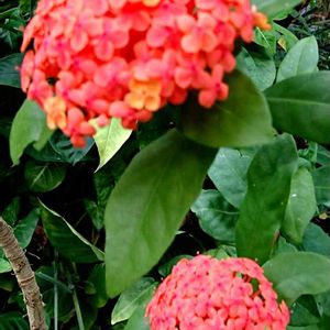 サンタンカ❤️💛 まん丸くこんもりとした姿がかわいい❤️💛 別名:イクソラ サンダンカ(三段花) 福岡市植物園にて
