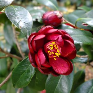 椿 ツバキ科 神代植物公園 1.2《絞唐子》江戸期 ヤブツバキ系 3《神代都鳥》神代植物公園で見出された 4《紺侘助》愛知産 5《春の台》江戸期 関東産