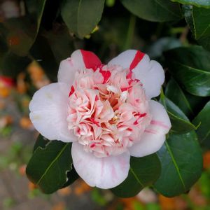 門横のツバキ 今年も開花 ꕤ.·*. 模様が可愛いツバキで真っ赤な庭のツバキより好きなのだけど とにかくこれが咲くとすぐに雨が降るのだ 雨に濡れるとすぐに茶色になって 元が可愛いだけに残念感がすごい そしてやはり今日も雨が降ったのだった……