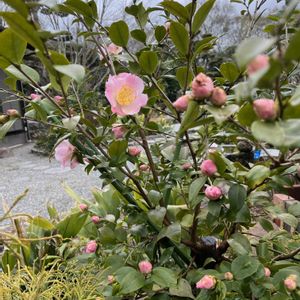 おはようございます🤗📡☀ 今日は最高気温予想も一気に14 ℃🌡️⤴️になるようです。 昨日は彼岸の中日💐。母の好きだったおはぎ😄父の好きだった桜餅🌸🌿を買いにいつもの和菓子店さんへ。 目的の半分はこの『胡蝶(絞り)侘助椿💮』見たさも😊✌ 🔍️【花色】桃紅色地に白斑入る 【花形】一重猪口咲き 【花径・花サイズ】極小輪・2cm~3cm 【開花時期】2月~4月 【特徴・魅力】桃色と白色がまじりあい、とても可愛らしく小さな花です。そして枝先にはたくさんの花を着けて約二か月間咲かせる魅力的な品種です。 江戸前期頃から記録にあるワビスケツバキ最古典花で、京都・大徳寺総見院や金閣寺の古木は樹齢300年を超えると推測されています。 日本各地の神社仏閣に存在し、たくさんの人に愛されています】…例年より花数は少なめの様でしたが店前🌳2m超えの立派な木。 💐次男と🐕️も一緒にお墓参り〜🚗少し足を伸ばして県境の道の駅にも立ち寄り買い物。 富山、氷見産のフレッシュな干し魚を購入。夜は、卓上で🐟️🥢小ぶりなのどぐろ🐟️や、カマス🐟️を焼き、自家製のホタルイカ🦑の干物を炙りながら ほっこり穏やかな日を過ごせました🍀🤗😋💞