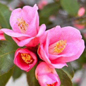 色々な遅咲きの椿 ①②③毎年 3月の終わり頃に 開花する小さな桃色の椿💕