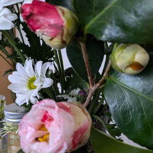 キッチンのラナンキュラスとご近所の椿のお花🌸 🌸ツバキ 19世紀のヨーロッパで ブームとなりお洒落の 代名詞に... 寒さに強く冬に開花する 常緑樹🌲🍃 CHANELの Camellia Collection 分類 ツバキ科ツバキ属 原産地 日本🇯🇵 朝鮮半島 中国🇨🇳 別名 耐冬花 藪椿 曼荼羅 椿(和名) 開花期 11〜12月 2〜4月 出回り期 10月〜3月 花色 ❤️🩷💚🤍 椿の花言葉〜 気取らない美しさ 誇り 謙虚な美徳(赤) 週末寒くなって 来週はまた暖かくなるようです♪ 寒暖差でお身体を大切に お過ごしください☺️