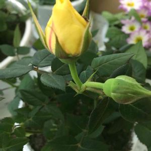 おはようございます😃 新しいミニバラ🌹ちゃんが増えました💓 昨日HCで黄色も欲しくて買っちゃった💞 今から咲くのが楽しみ⸜( ´ ꒳ ` )⸝♡︎