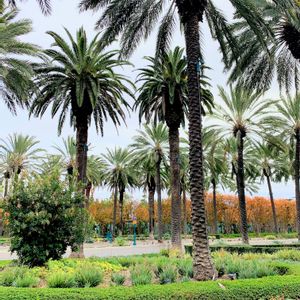 🌴散歩路 ヤシと 極楽鳥花の植え込み アメリカ カルフォルニア