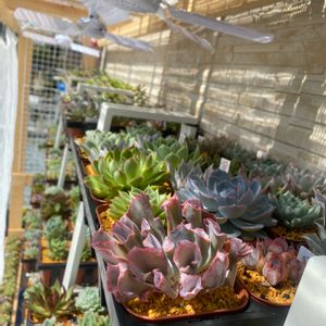 ⏪前のpicより 【エケベリア属 パープル バタフライ】 Echeveria 'Purple Butterfly' 中国名 紫蝴蝶 ネームタグは 【パープル バタフライ】🏷 葉が薄いフリルタイプと、 葉が厚いムチムチタイプの 2種類が存在するようです🦋 画像は黄緑の葉のフリルタイプ 正確な情報は不明ですが、 ラグナとの交配かも?との事 フリルがかった薄い葉は、 この辺りの影響を 受けているのかも知れませんね ☆Source☆ 【多肉联萌】 https://www.drlmeng.com/purple-butterfly.html