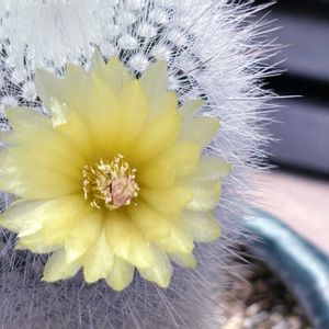 おはようございます☂️ 梅雨入りしました 5年前にダイソーで買った サボちゃん 可愛いお花咲きました💛 名前が分かりません… 色々調べて 金晃丸かな…ムスクラ? でもムスクラの花はオレンジ色で 金晃丸は黄色どっちかなぁ… もう一つ蕾があるので 咲くの楽しみ😊