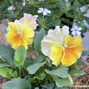 久しぶりに咲いたビタミンカラーのパステルビオラさん😄 真ん中は、先々週の寒い日に、カラスに株を引き抜かれて、1m半位下の地面に落とされてたけど、また復活して咲いてくれたパンジーのふわふりるちゃん🤓 良かったあ🤗 1番下の恋みやびさんは、今日は姉妹のように並んで、透け感がいい感じ(*•̀ᴗ•́*)👍 (50円の見切り品だったけど、無事に育っています😆) ℭ.⸜(⠀ ᐢ ᵕ ᐢ )⸝⸜( ᐢ ᵕ ᐢ )⸝𝒰ᵗ♛︎⡱