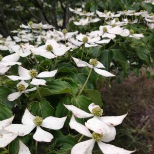 ヤマボウシ🌿🌼✨❇️💚 白い座布団にチョコンとお行儀よくお座りしてる🌼💚❇️ 白と緑のコントラスト可愛い🤍💚✨💞 近所の小さな緑地公園💚❇️🌼