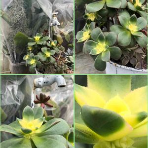 今朝の物干し場ガーデン 屋根無しの場所ですが皆んな元気です。 真ん中あたりのカランコエ胡蝶の舞が とても素敵な色合いです。