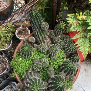 大きな鉢の中でポコポコ増えています。 入り込んだセダムも元気! このサボテンは綺麗なお花を咲かせます。 今年も咲いてね❣️