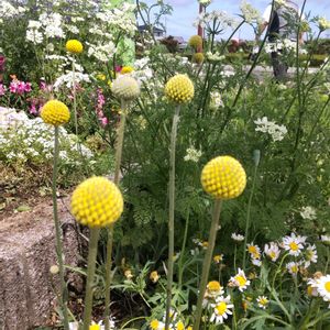 《キンギョソウ✖️クラスペディア》 クラスペディアは、まん丸くてユニークな黄色い花が特徴的なキク科の多年草です🤭 特にドライフラワーとして人気が高く、切り花としても長く楽しむことができます🌼 フローラルガーデンよさみにて