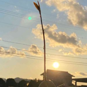 夕日に映えるアボカド🥑ちゃん次男です。 長男は4年前だいぶ立派に💪🥑 朝日も撮れたが📱ヤッパリ~キラライちゃんにタッチ🖐だわ🤣