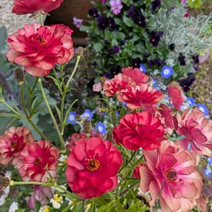 ラナンキュラスって花束みたいに咲きますよね。 こちら先日玄関先で雨宿りした鉢。 これでもまだ一部で全部雨宿りできなくなってる💦 ほかの寄せ植えたちもみんな満開で、毎日切り戻しに追われていて、ちょっと疲れるぐらい。 春のお花パワーはすごいですね!
