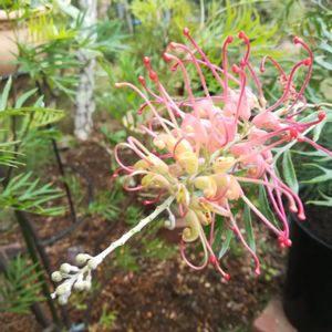グレビレアロビンゴードン 寒い時期の植替えでつぼみが下向いていたけど、今朝見たら上向いてきた! 花が待ち遠しい。
