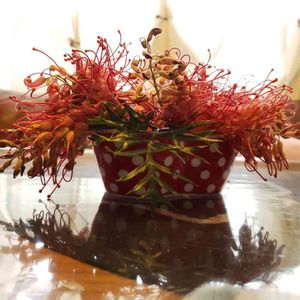 グレヴィレア・ロビンゴードン💕 次々と蕾が上がってきてるので、お花は✂️して小鉢を花瓶代わりに飾ってみました😊
