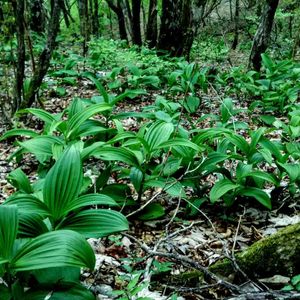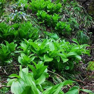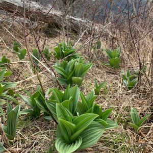 山菜採りに出掛けた山道路の横 たぶん、バイケイソウの群生 6月の開花時に再度訪れよう🎵
