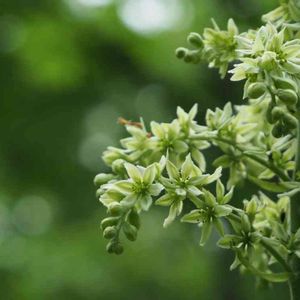 高さ1.5m位。水芭蕉と一緒に成長して、6月上旬に咲き始める。梅蕙草、花は梅の花のよう。