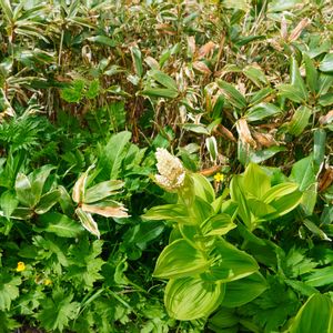 6/7 戦場ヶ原 群生している鮮やかな緑の大きな葉💚 花序が長く伸びて背丈ほどにもなる「バイケイソウ」です。 花序が分枝して短いコバイケイソウとそっくり(やや大きいけど)で茎が伸びる前だとなかなか分かりにくいのですが、観察会の一行の講師の方に聞いたら、奥日光にはコバイケイソウは分布せず、全てこのバイケイソウと言う事でした🧐 前にコバイケイソウとタグをつけていたものは訂正してあります😅