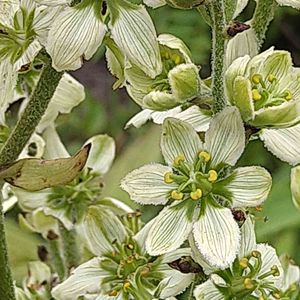 バイケイソウ(梅蕙草) *シュロソウ科シュロソウ属 花期は6〜8月 北海道〜九州の山地から亜高山帯にかけての林内や湿った草地に生える。 草丈は0.6〜1.5mと大きな姿! 岩手県の山あいの道を走ると、道沿いにこの大きな姿❗️ すぐに車を止めて撮影しました。 10株ほどが並んで咲いていて驚きました‼️ 花は梅、葉がケイランに似ている事からついた名前!(梅の花弁は5枚ですが、こちらは6枚あります❗️) 有毒植物で、ウルイやギョウジャニンニクと間違える事があるようです。 絶滅危惧種の指定は分布域の10都道府県! 6月18日撮影 岩手県 西和賀町県道沿い