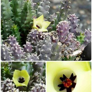 勲章の正体が遅くなりました 勲章は右下真ん中です 優しいレモンイエローの ガガイモさんのお一人です 綴化本体より先祖帰りの方が多くなってお花咲いてくれました 今年もまだなんだろうと諦めていましたら 外界を覗き見るように咲いていました 蕾が出来てた事も昨日まで知りませんでした😅 心待ちしてたから、嬉しかったです 名前は消えてしまいました 現在調べ中で似たのはあったのですが お花が違って💦振り出しです ひろさんが教えてくれました🎵 ガガイモ科 フェルニア属 竜王角