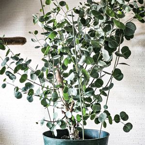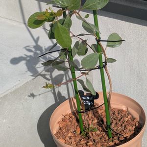 ユーカリ ポポラス 去年ものの売れ残り。主幹の上が枯れていたものを処分価格で。 幹をノコギリで切って株元から噴いた芽を伸ばしてブッシュ仕立てに。 処分品のユーカリやアカシアは状態が悪くても幹が太くなっているものが多くいので、こういった背の低い仕立てにするには結構使えます。 春になったら切り戻して切った葉をドライスワッグにしてもいいかもです。