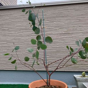 先日HCで、陳列前のユーカリが通路に置かれているのを見かけ気になりつつ帰宅。 3日後、一鉢しかなかったけどまだ残ってたら買おうと決めて行ってみたらユーカリさん残っててくれました^ ^ 札にはユーカリとしか表記されていないのだけど、この子はポポラスさんかな? 以前、グニーをカリカリにしてしまったので、今度はそうならないように育てたいです!