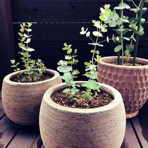 ベランダ改造計画☆ 何から始めようかネットで迷いに迷って購入したユーカリ 始めての土いじり楽しい♪