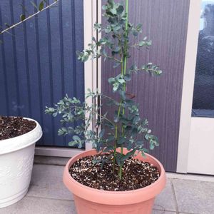 苗でお迎えした時は一箇所から3本生えていたユーカリグニー。1本変色している病気っぽい?葉っぱがあって経過を見ていました。 この間、うっかり水切れさせてしまいカラカラになってきてしまったのと2本目にも葉っぱの変色が見つかったので2本をバッサリ切りました✂️これから暑くなって蒸れてもいけないので思い切って💦 最後に残った1本🌴 背が伸びてきたので添え木をし、これからの成育期に備えて大きめの鉢に植え替え。小さな新芽が出てきました。 元気に成長しますように…❗️✨ そしてポポラスも欲しい😅