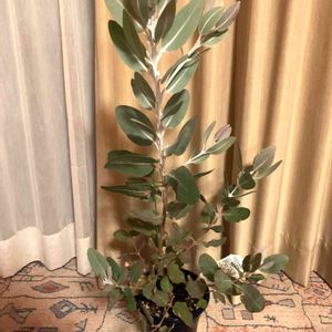 庭にあるユーカリとオリーブ ユーカリが強風で倒れてました💦 砂利が土まみれに(笑)😂 ユーカリブルーガムの下部の葉が生えてこない… 上だけフサフサ〜🍃
