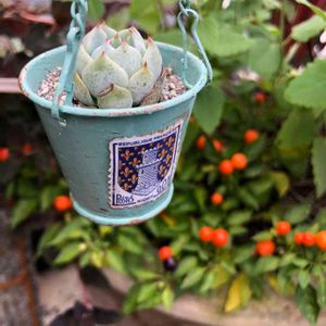 リメ缶ならぬミニリメバケツを作ってみました。ダイソーのガーデニングコーナーにある外径4.5cmのハンギングミニバケツです。小さなザラゴーサ(未発根)を植えました。根が出で欲しい願いを込めて👏