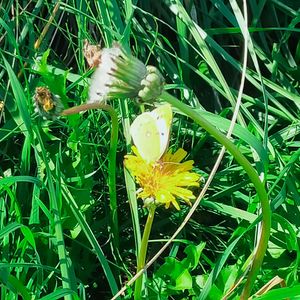 黄色の蝶とたんぽぽ