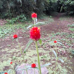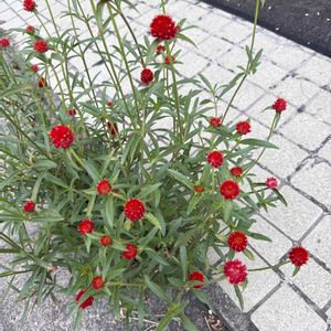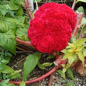 おはようございます😊 以前、我が家の野良トレニアをアップしましたが、こちらは野良センニチコウ🔴 昨夏からのこぼれ種で花壇ではなく、庭のあちこちから発芽し、花を咲かせています🥰