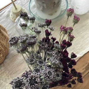今日は1日雨予報なので、いい具合にドライになった花々を使ってアレンジづくり セロシアをメインにヤブラン・フジバカマ・ハツユキカズラをさしてみました(全て庭産) アフターガーデニングは楽しい!