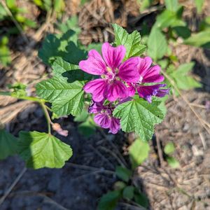 ★ゼニアオイ(銭葵)★ アオイ科の 越年草又は多年草 花期:6~8月 全体にほぼ無毛、高さは60〜90cm。葉は掌状に浅く5〜7裂する。花は濃ピンク~紫色で濃紫色のすじがあり、花弁は浅い凹形、直径約3.5cm。 ー似た花ー ※ウスベニアオイ 茎に全体に粗い毛。葉の切れ込みが深い。花は淡いピンク~赤紫色で、花弁は凹形。 2025.6 上野不忍池にて📱