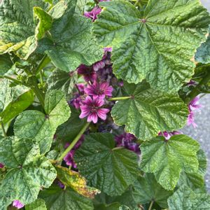 散歩道🚶♂️🚶♀️ 歩道脇に咲く 「ゼニアオイ」 銭葵 ? Googleで🔍 よく似たウスベニアオイもあるが見分けが難しらしい