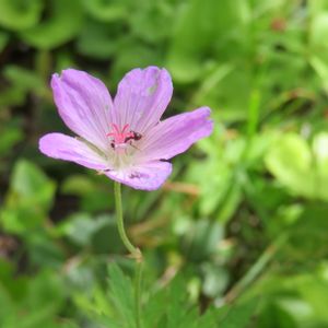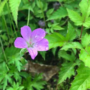 海の日シリーズ#12、白山高山植物園にて。ハクサンフウロは盛りを過ぎてしまい、咲き残った一輪。名残惜しんでパチリ!