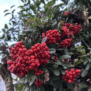 🎅🎄こんにちは〜😊🪅 🔴今日のお花❤️💛🧡 ピラカンサ 和名 トキワサンザシ ピラカンサのような赤い実のなる木を、「名誉」を司る南の方角に植えるのは大変縁起が良いとされている。 赤い実をつける トキワサンザシ 黄色い実をつける タチバナモドキ オレンジ色の実をつける カザンデマリ ・・などが、ピラカンサという総称で呼ばれている。 ご近所のお庭より〜